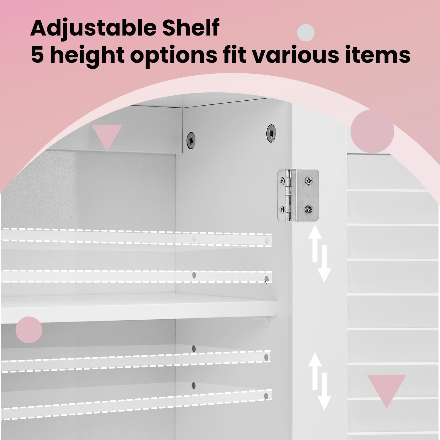 HASSLE-FREE STORAGE: The internal shelf has 5 height settings to satisfy your needs; also, 1 open shelf gives a quick overview and offers a perfect perch for your perfume bottle or most frequently used items.