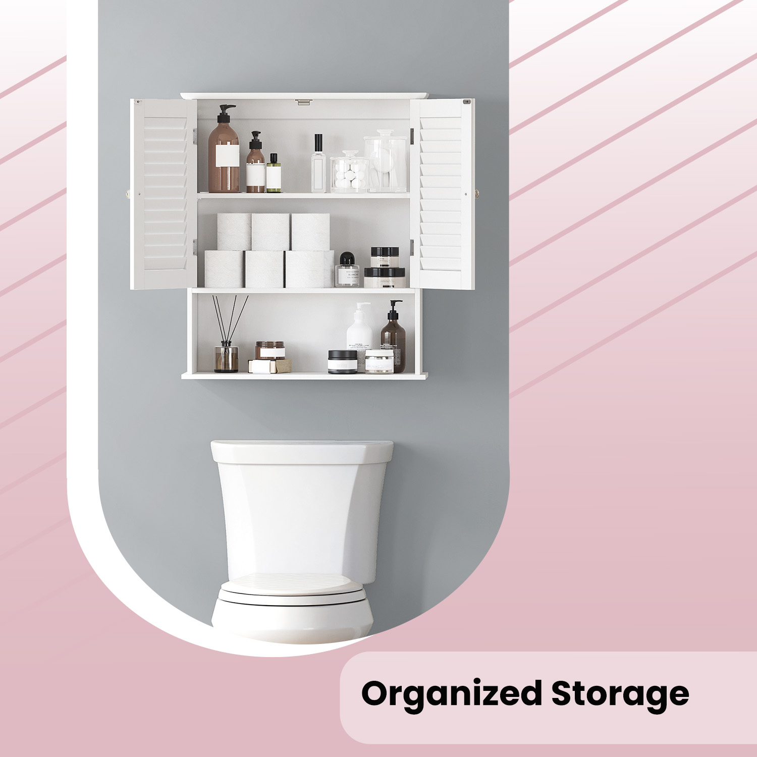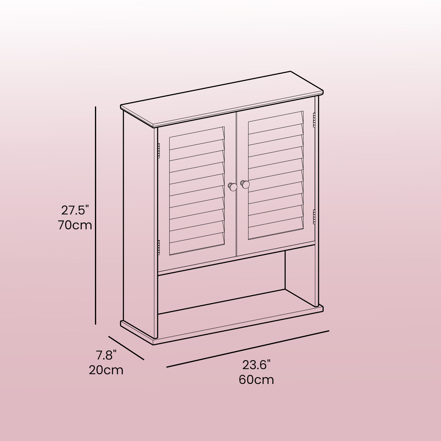 This sleek wall cabinet is the perfect solution for organizing toiletries, hair care products, and perfumes, keeping them easily accessible in one neat place. Crafted from E1 grade MDF with a modern design, double shutter doors, and chrome-plated metal knobs, it complements bathrooms, living rooms, entryways, or any space. The adjustable internal shelf offers five height settings, while an open shelf provides quick access to your most-used items. Easy to assemble with clear instructions, this wall-mounted cabinet combines style and functionality. Plus, professional customer service ensures satisfaction before and after your purchase.