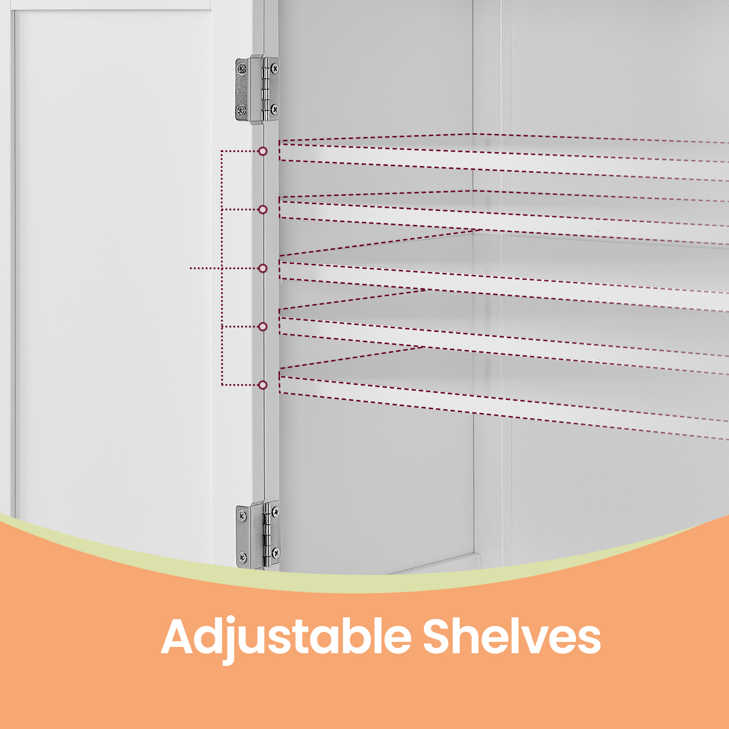 [Customizable Storage] Easily adjust the shelf in each cabinet to 5 different positions, providing the flexibility to accommodate items of varying heights.