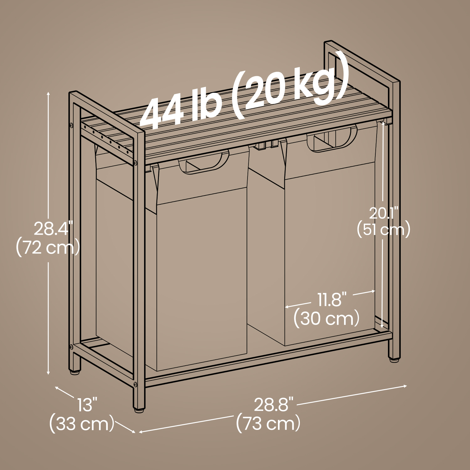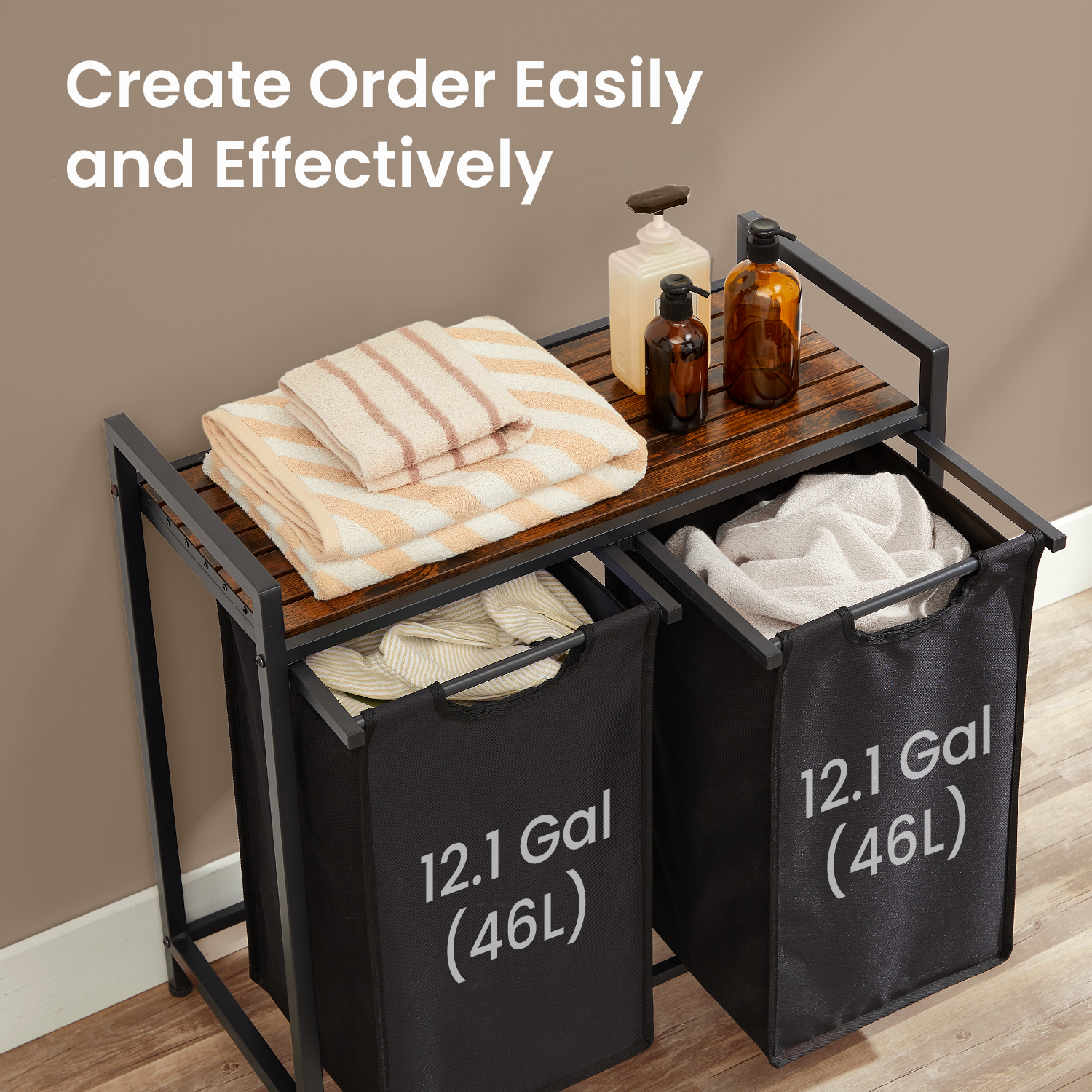 This versatile laundry hamper helps you keep dirty clothes organized with two separate Oxford fabric pockets, perfect for sorting laundry by color or type. It features a convenient shelf for storing bathroom essentials like detergent and fabric softener within easy reach. Built with a sturdy steel frame and a high-quality MDF tabletop, the hamper offers excellent stability, enhanced by adjustable feet and anti-tip supports. The removable fabric pockets are reinforced with plastic panels to prevent sagging and can be easily detached for machine washing. Ideal for laundry rooms, bathrooms, or bedrooms, it’s a practical storage solution wherever you need it.