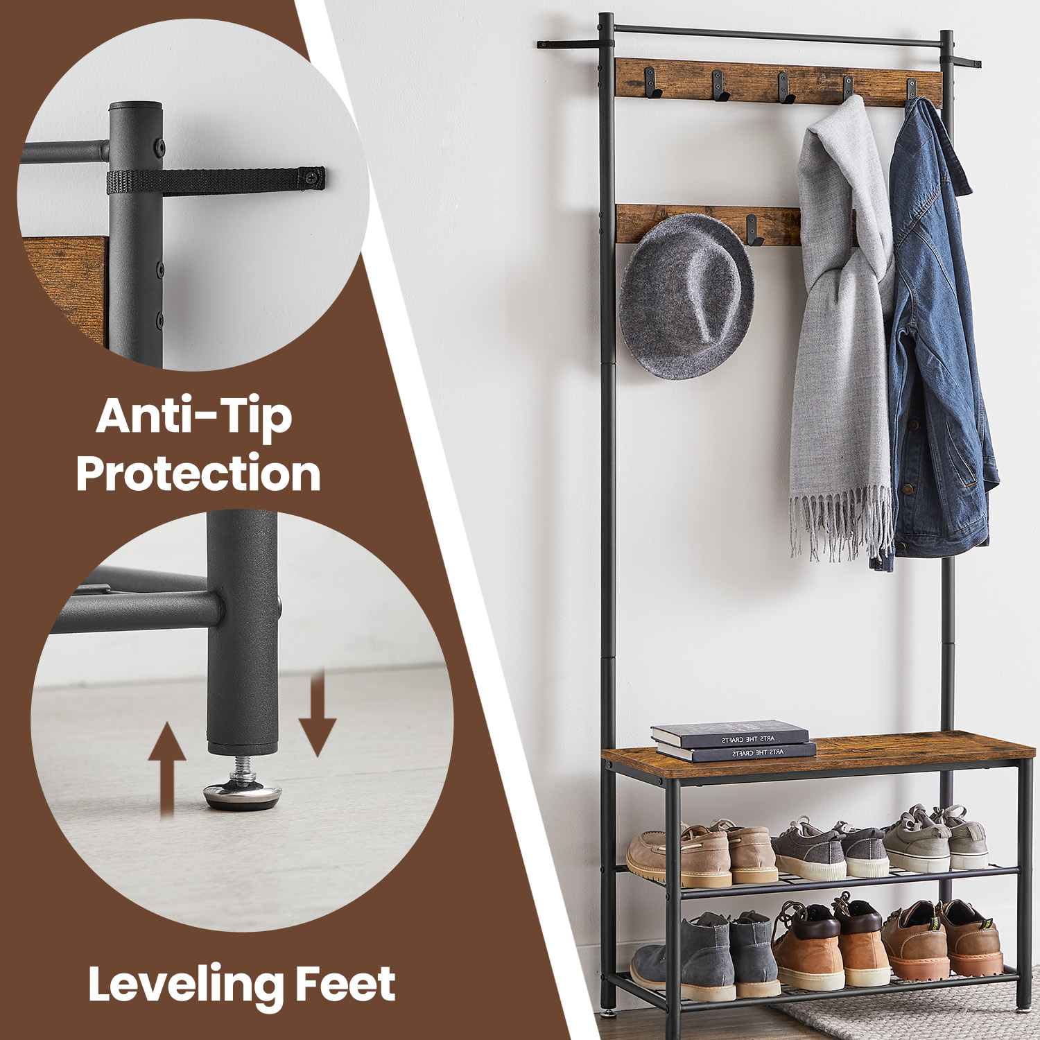 [Sturdy and Stable] Supported by a sturdy steel frame and levelled by 4 adjustable feet, this coat stand for the hallway gives your items stable support; the included anti-tip kit enhances the overall stability.