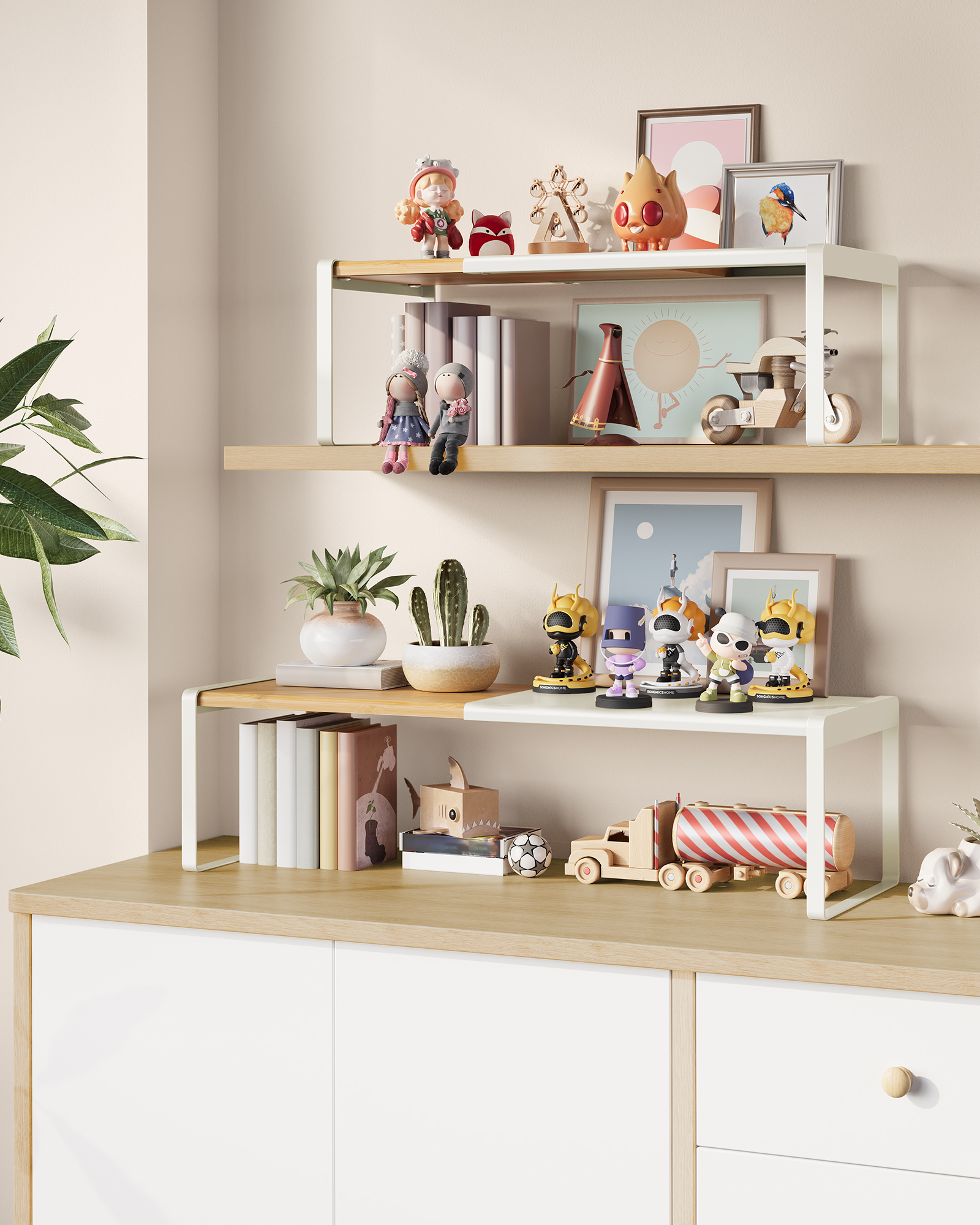 【CHIC STYLE】The natural beige and cream white hues lend a chic and unique flair, making this countertop shelf a perfect decor for your home.