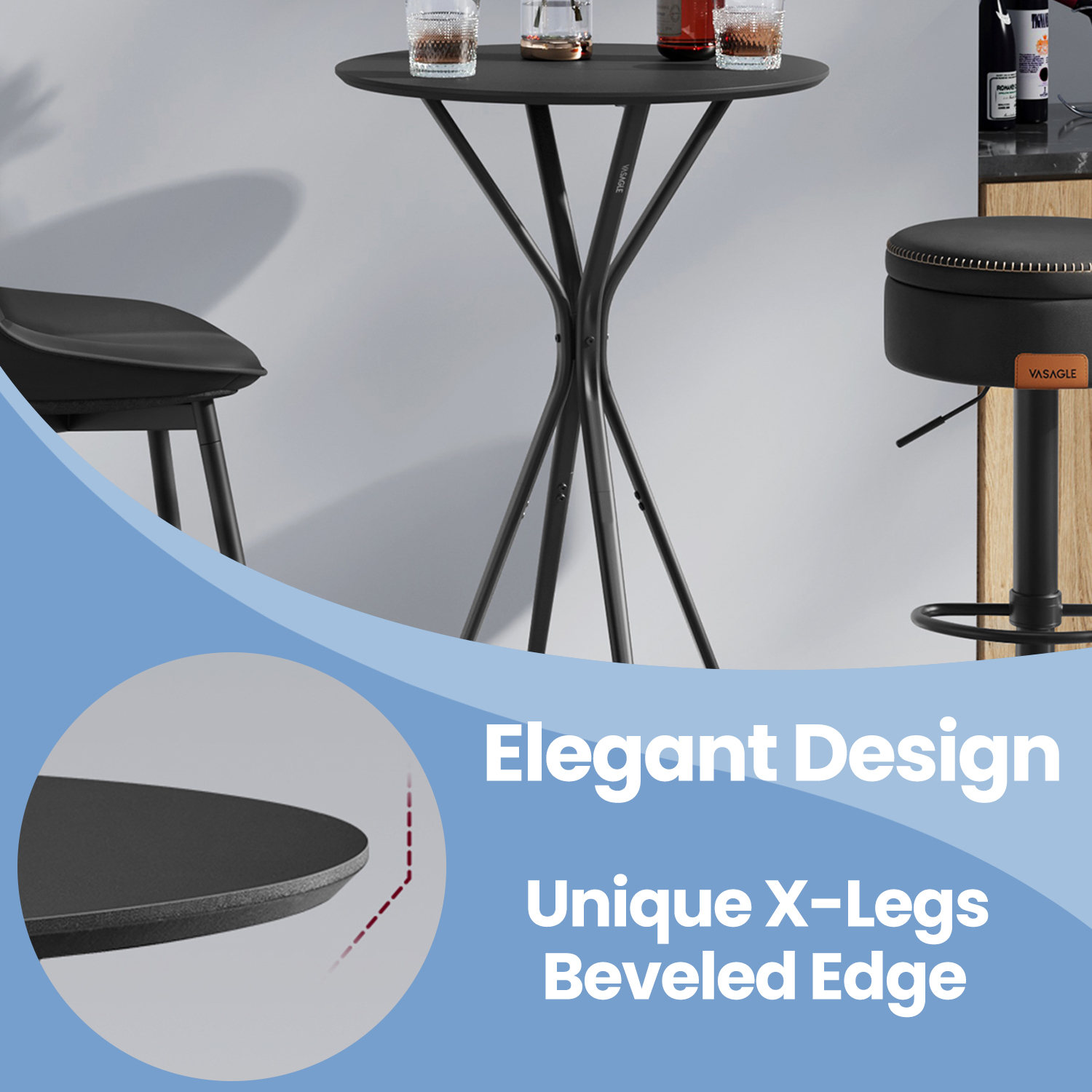 【STYLISH DESIGN】The unique X-shaped table legs introduce a touch of elegance to your home. This bar table allows you the freedom to adorn it with flowers, string lights, or any other petite decorations that catch your fancy.