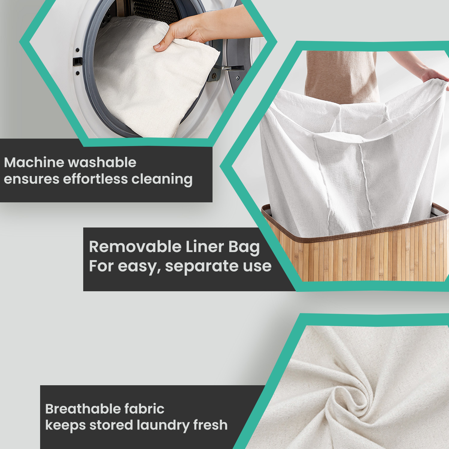 [Removable & Washable Liner Bag] The inner bag made of 160 g/㎡ cotton fabric is removable, so you can carry it to the laundry room easily. If it gets dirty, just throw it in the washing machine.