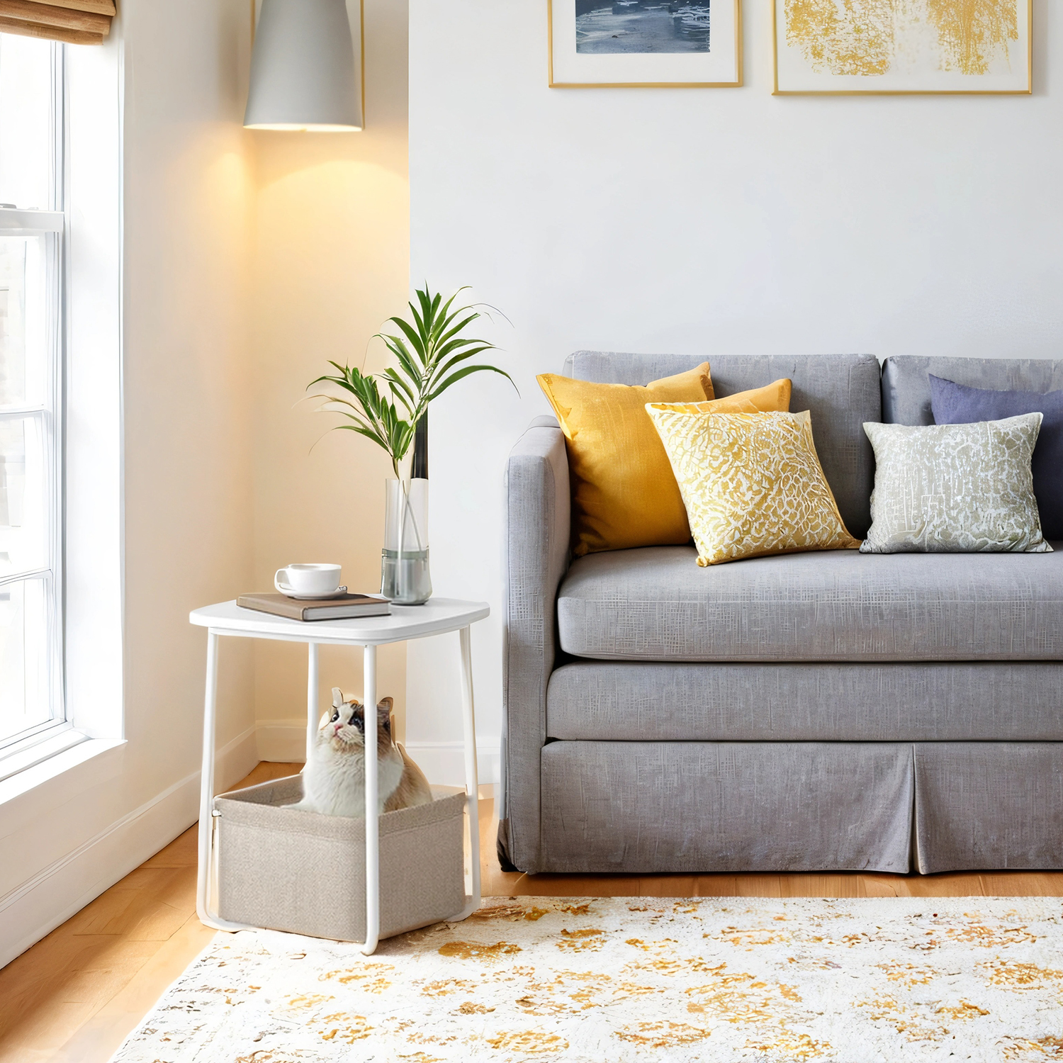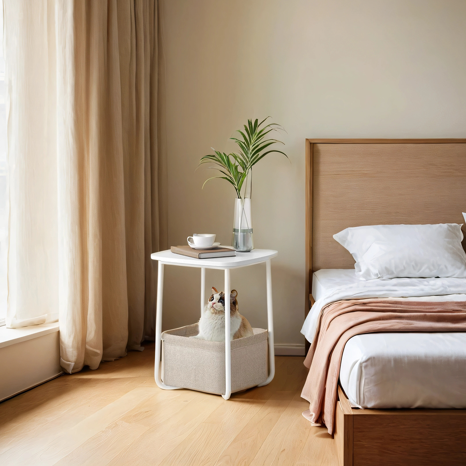 This modern round side table is designed to meet the needs of compact living, making it a practical addition to any B2B furniture range. With a clean matte white finish and a camel brown fabric basket, it brings a subtle yet stylish accent to various interior settings. The sturdy tabletop and U-shaped steel legs ensure lasting stability, while adjustable feet protect floors from scratches. The included double-layered polyester basket offers extra storage and a linen-like texture that enhances its visual appeal. Easy to assemble in minutes, this table is ideal for use as a nightstand or living room side table—combining space efficiency, functionality, and contemporary design.