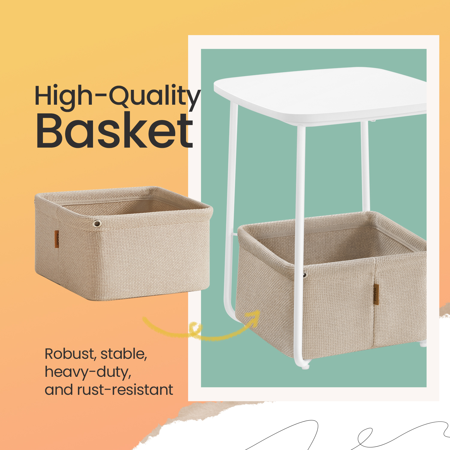 【QUALITY FABRIC BASKET】The double-layered polyester fabric basket is visually appealing, crease-free, and free of chemicals, making it safe to use. Its linen-like appearance adds a touch of uniqueness to this round table.