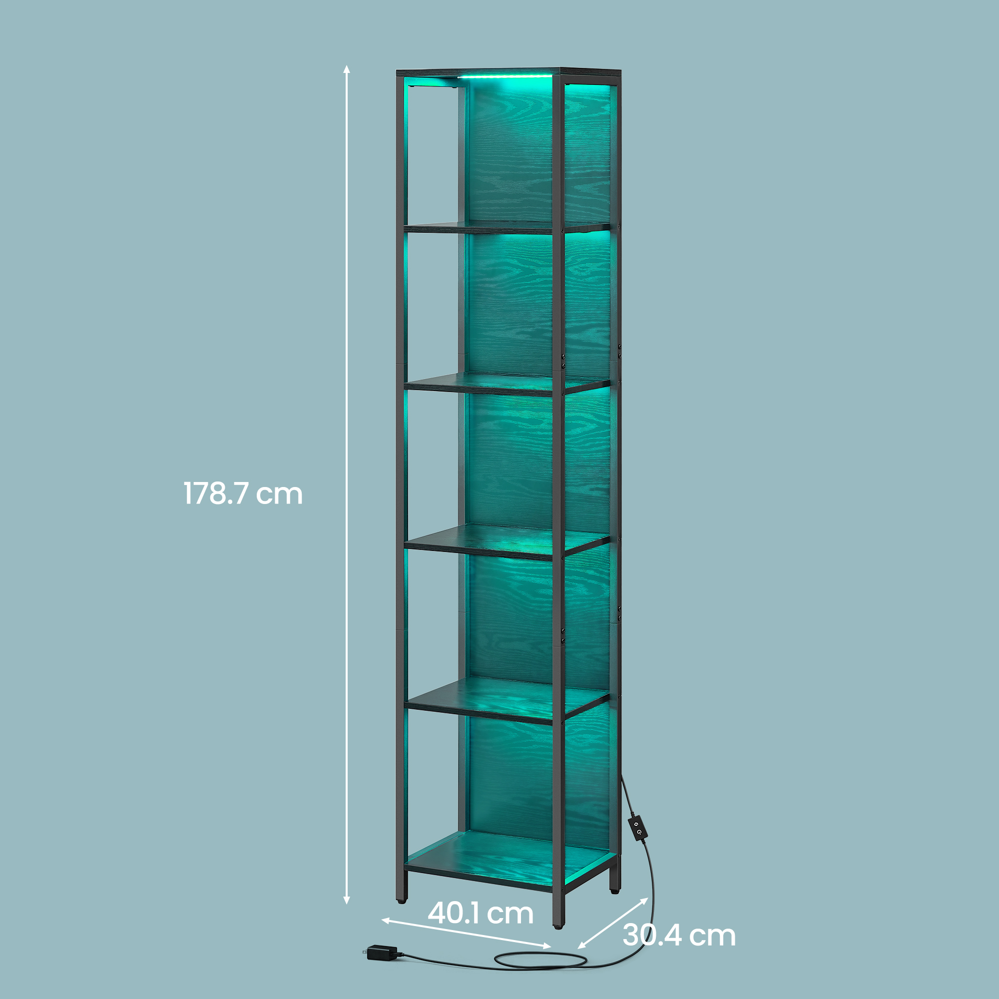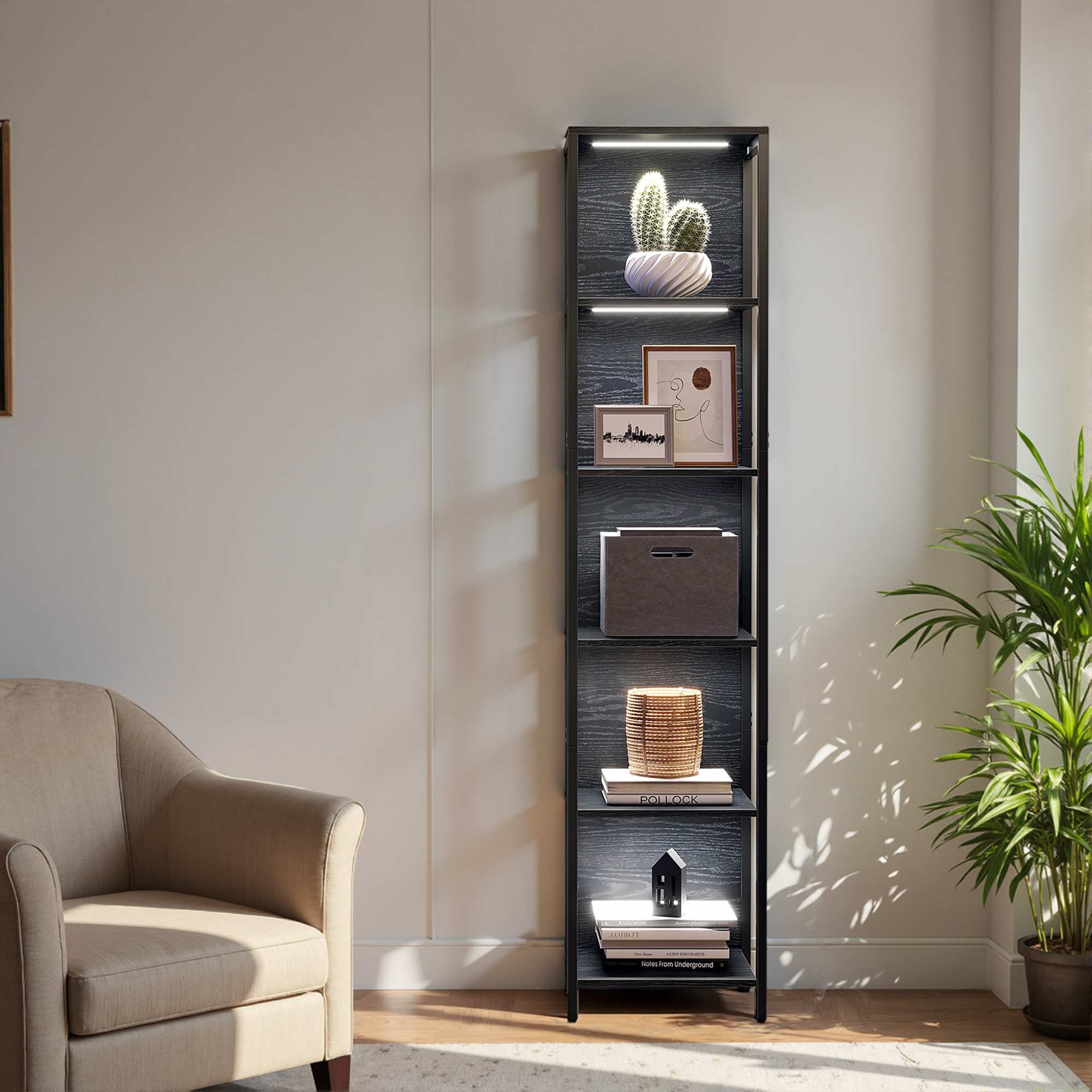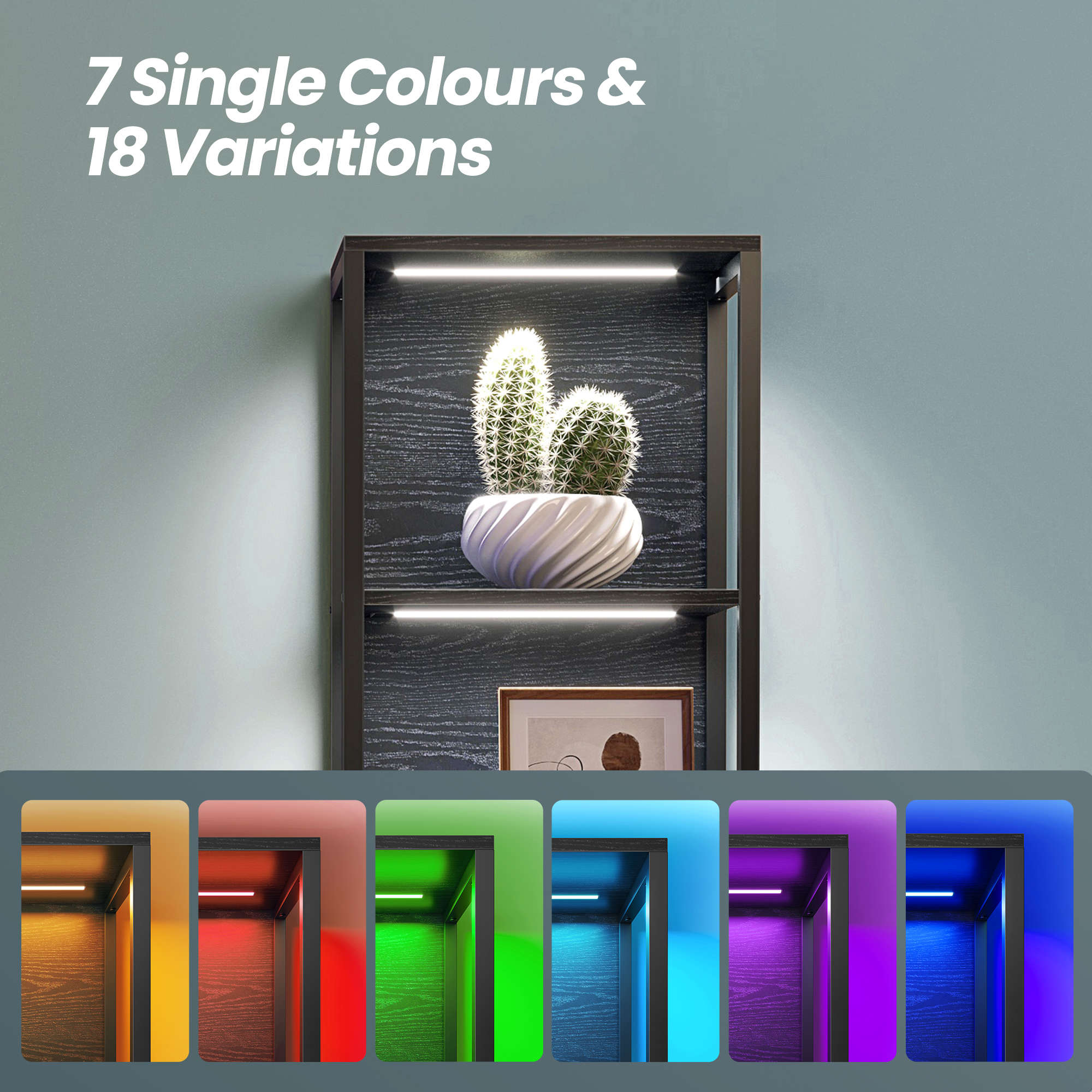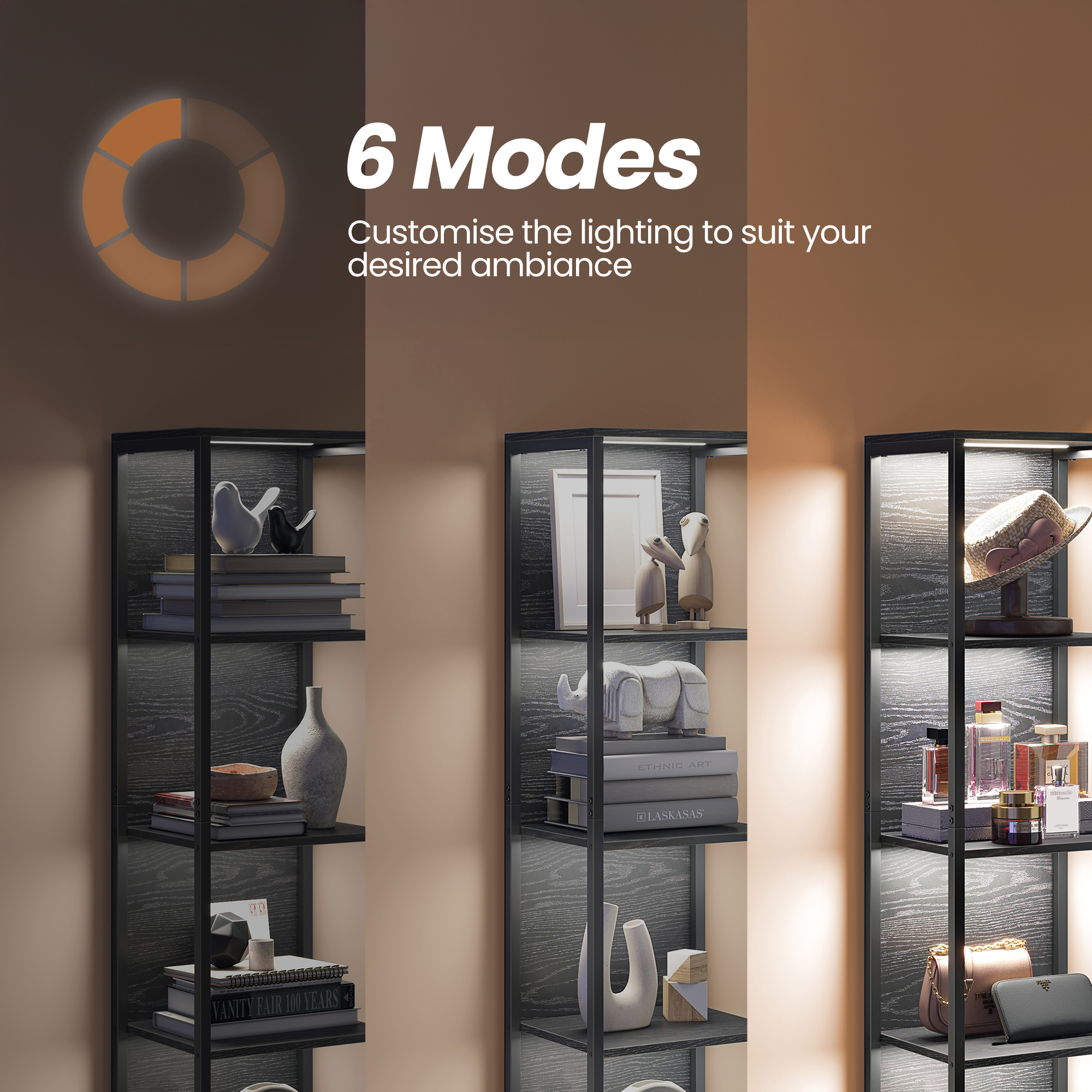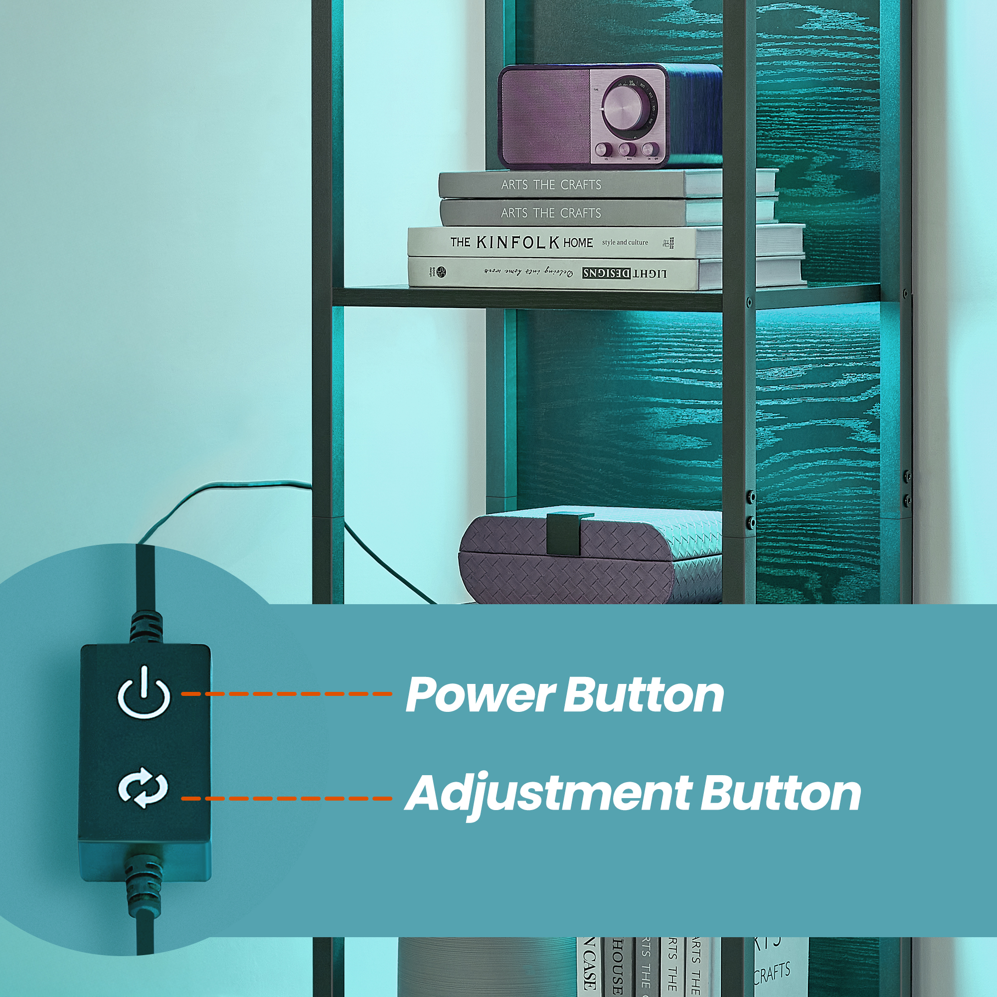 ADJUSTABLE LED LIGHTING – This bookshelf has 25 color LED lights, 6 brightness levels, 10 flashing modes and 6 flashing speeds, plus a remote control provided to create a unique atmosphere.
