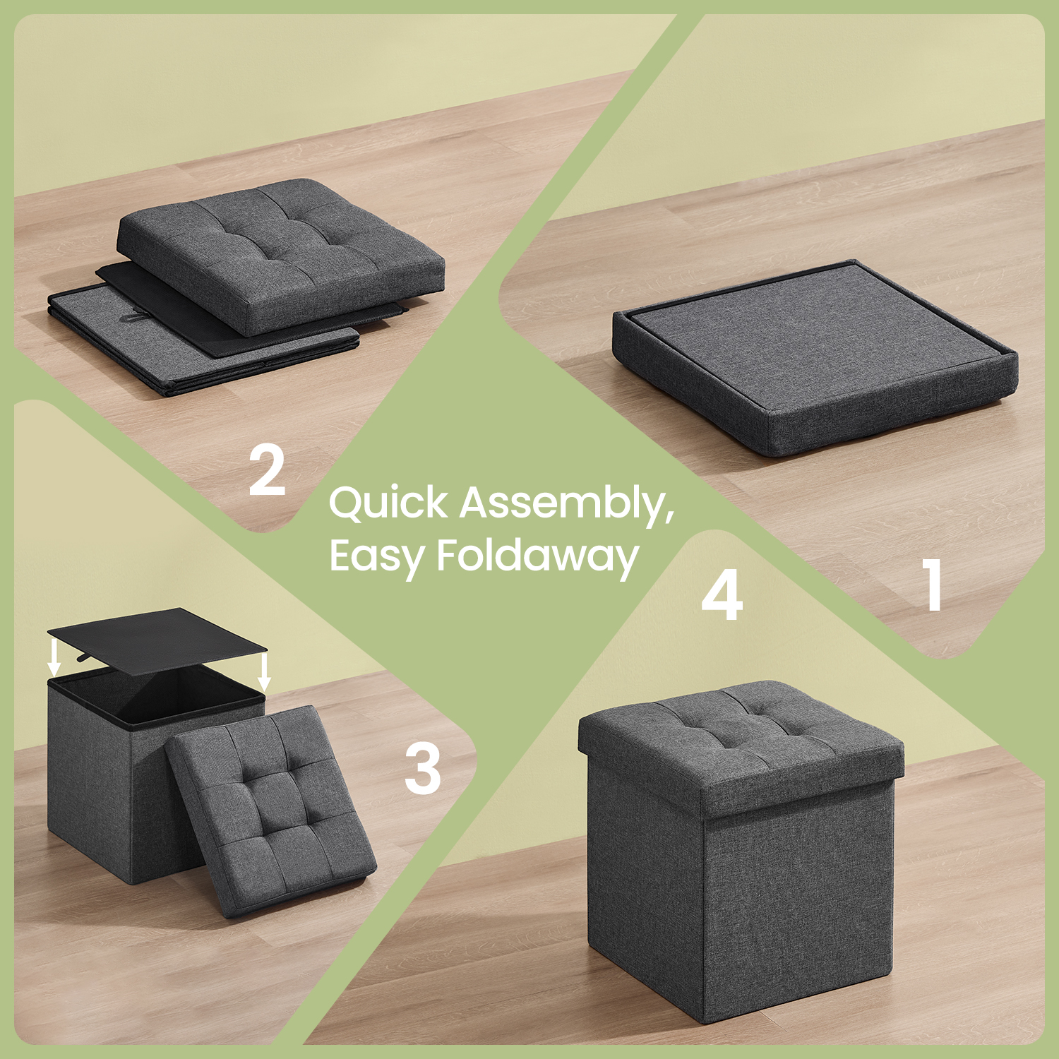 Hidden Storage Space: loads of storage inside, as a handy storage box. Spacious space 40L to hide away clutter, hold clothes, toys, magazines, blankets, and bedding perfectly.