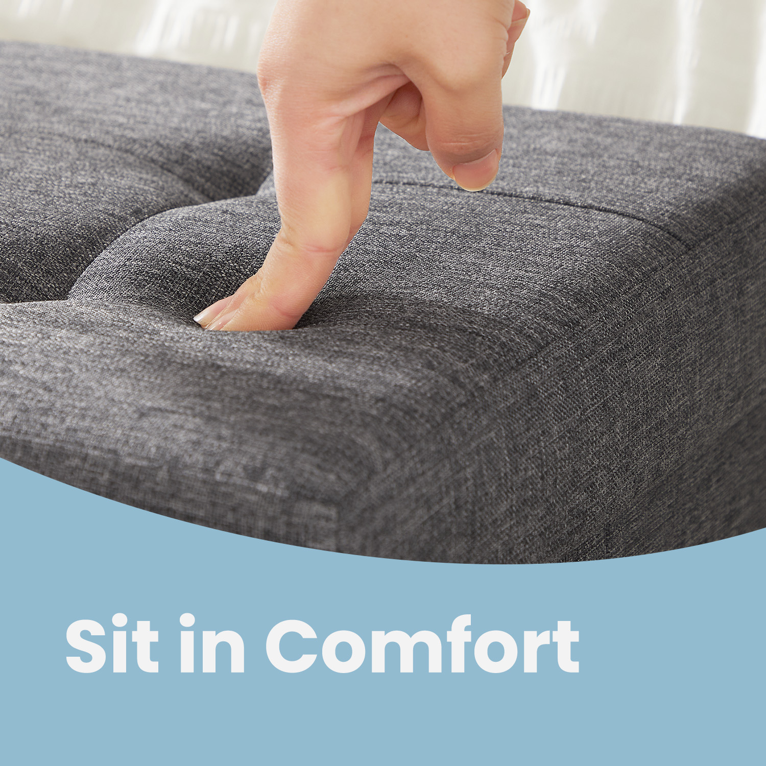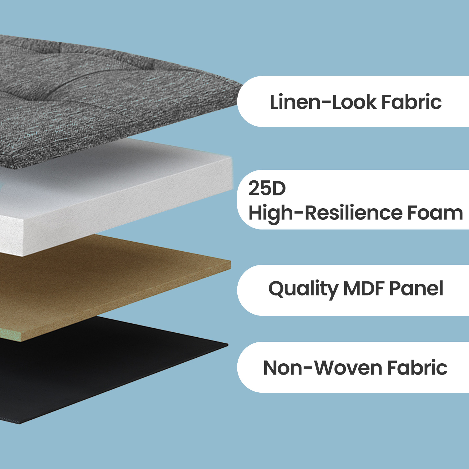 Strong and Comfortable Seating: TÜV Rheinland certified for safety, this bench supports up to 300 kg static load, making it ideal for two people. The dark grey linen surface offers a soft, comfortable seating experience that complements any decor.