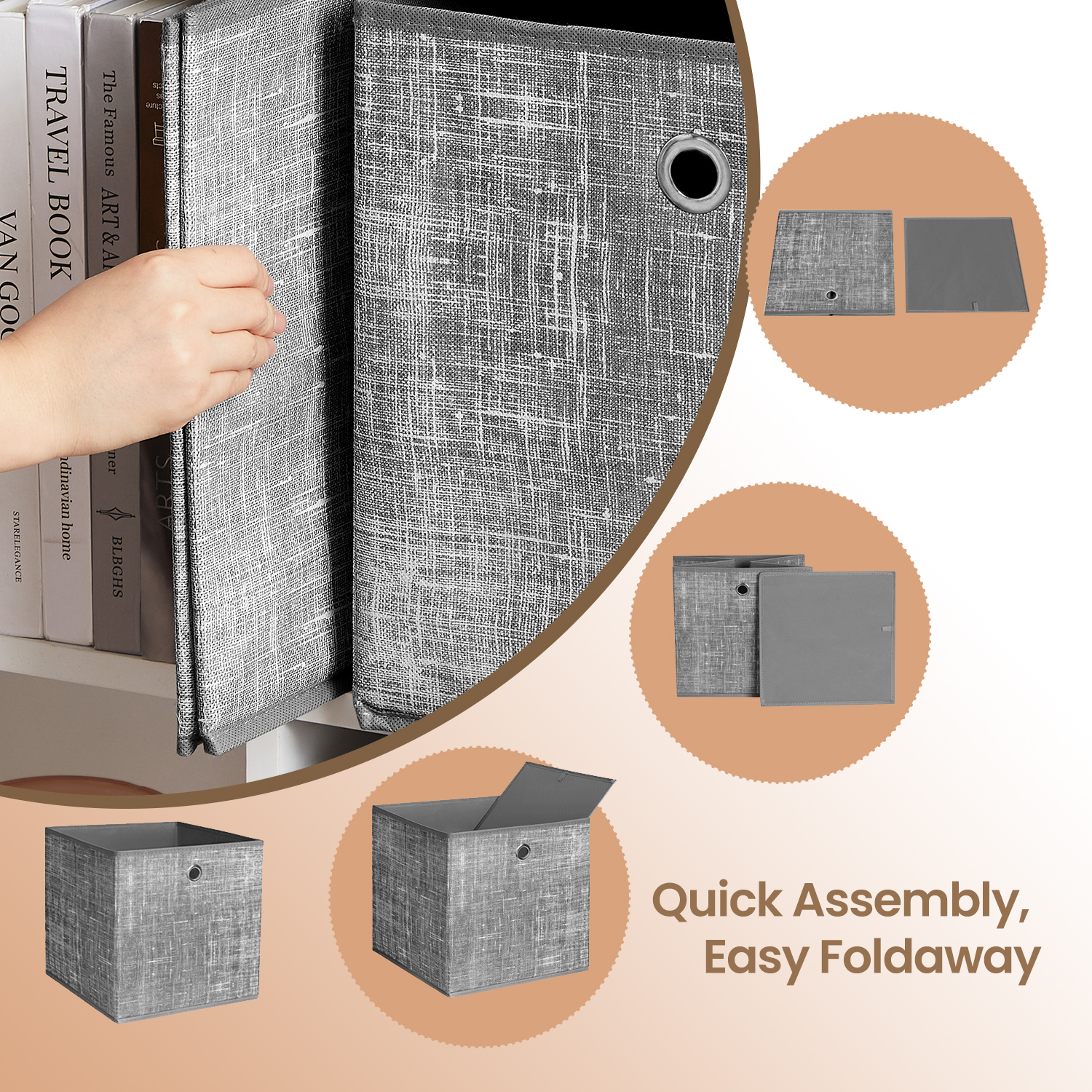 Stand or Fold: Open the box up, put the reinforced bottom in, press a little so that it sits firmly in the corners, and then your home will liven up; with the thoughtful collapsible design, easily folded up and stack away when not in use.