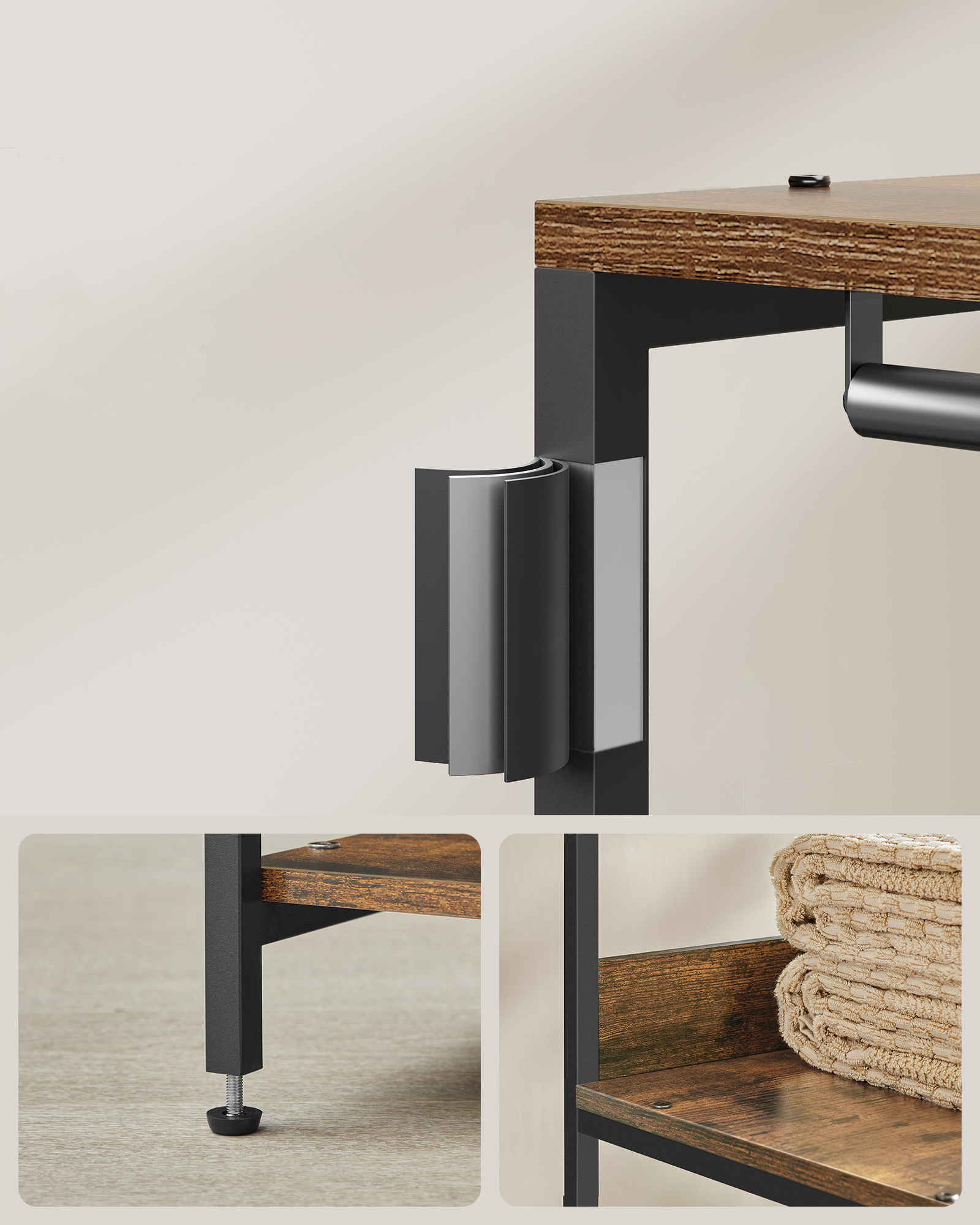 【STABLE, SECURE, SAFE】Equipped with adjustable feet for stability on uneven surfaces, raised edges to prevent items from falling, and an anti-tip kit for added safety, this clothes rack ensures your belongings are securely stored.