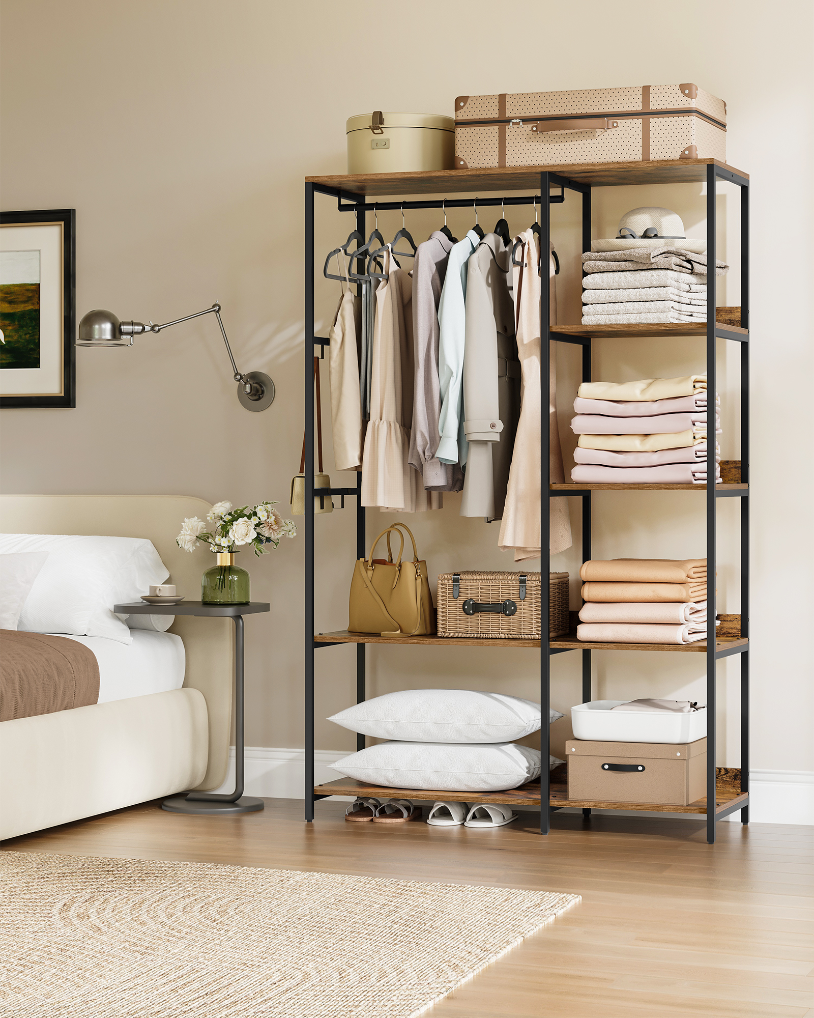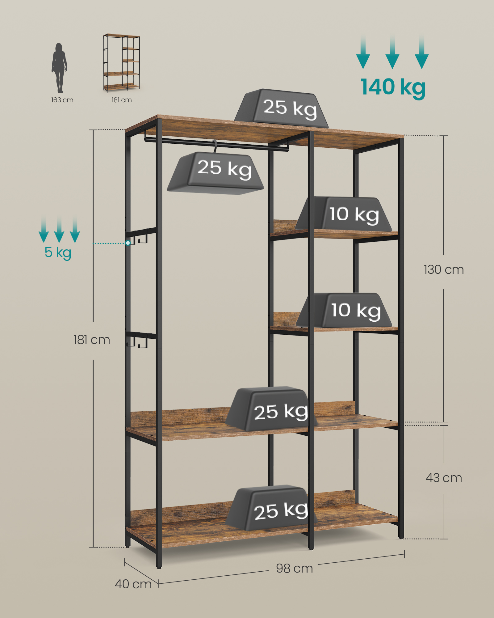 【ROBUST AND RELIABLE】Constructed with a sturdy steel frame and thick particleboard panels, this clothing rack can effortlessly support up to 140 kg. Hang your heavy winter jackets with confidence!
