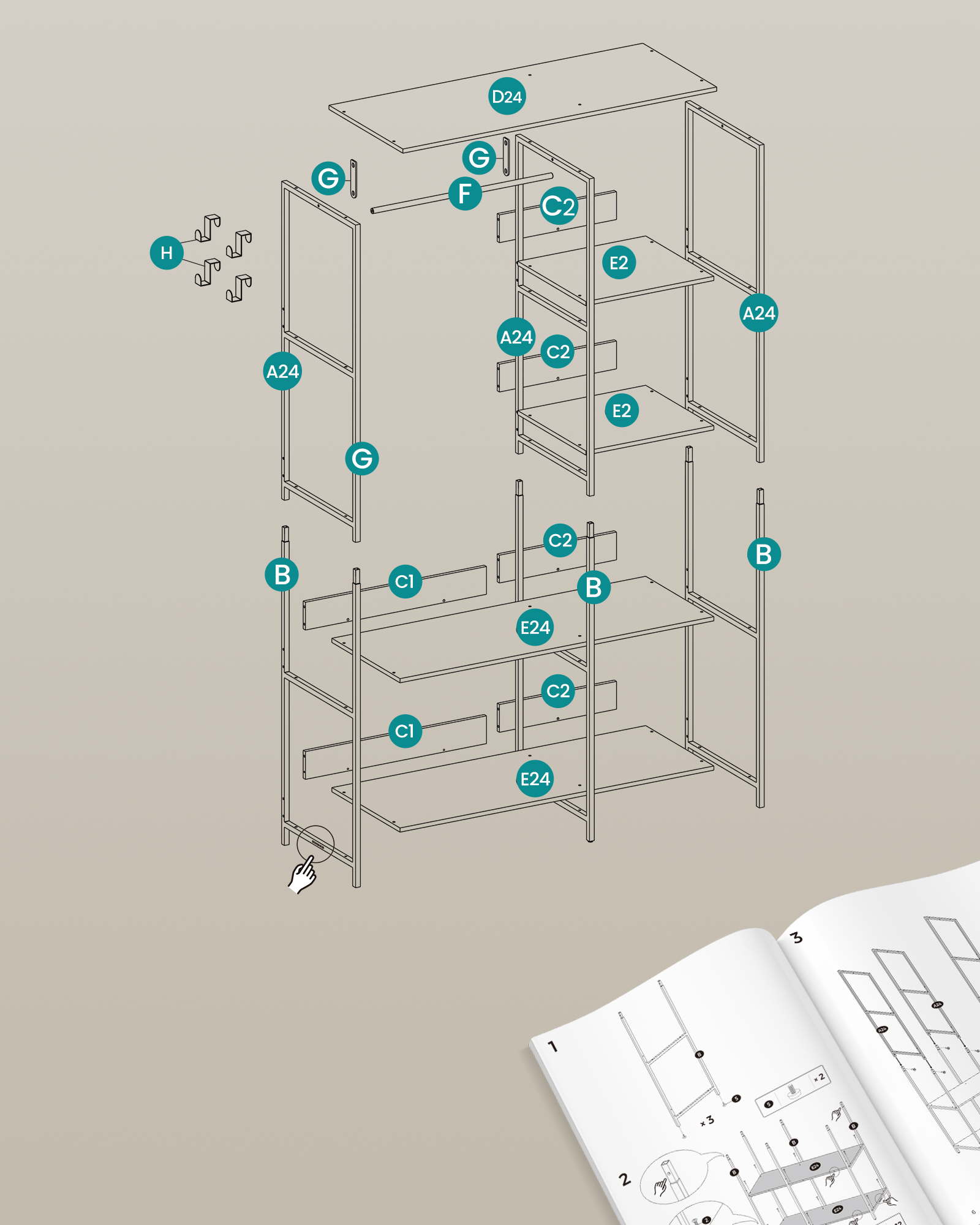 This heavy-duty clothes wardrobe is designed for B2B buyers seeking practical, high-capacity storage solutions. With a spacious layout featuring shelves, a hanging rod, and four removable hooks, it efficiently organizes garments, accessories, and travel essentials. Constructed from a sturdy steel frame and durable particleboard panels, it supports heavy loads with ease—ideal for both residential and light commercial use. Added features like adjustable feet, raised edges, and an anti-tip kit ensure enhanced safety and stability. Easy to assemble with included tools and clear instructions, this unit combines durability, functionality, and thoughtful design for modern storage needs.