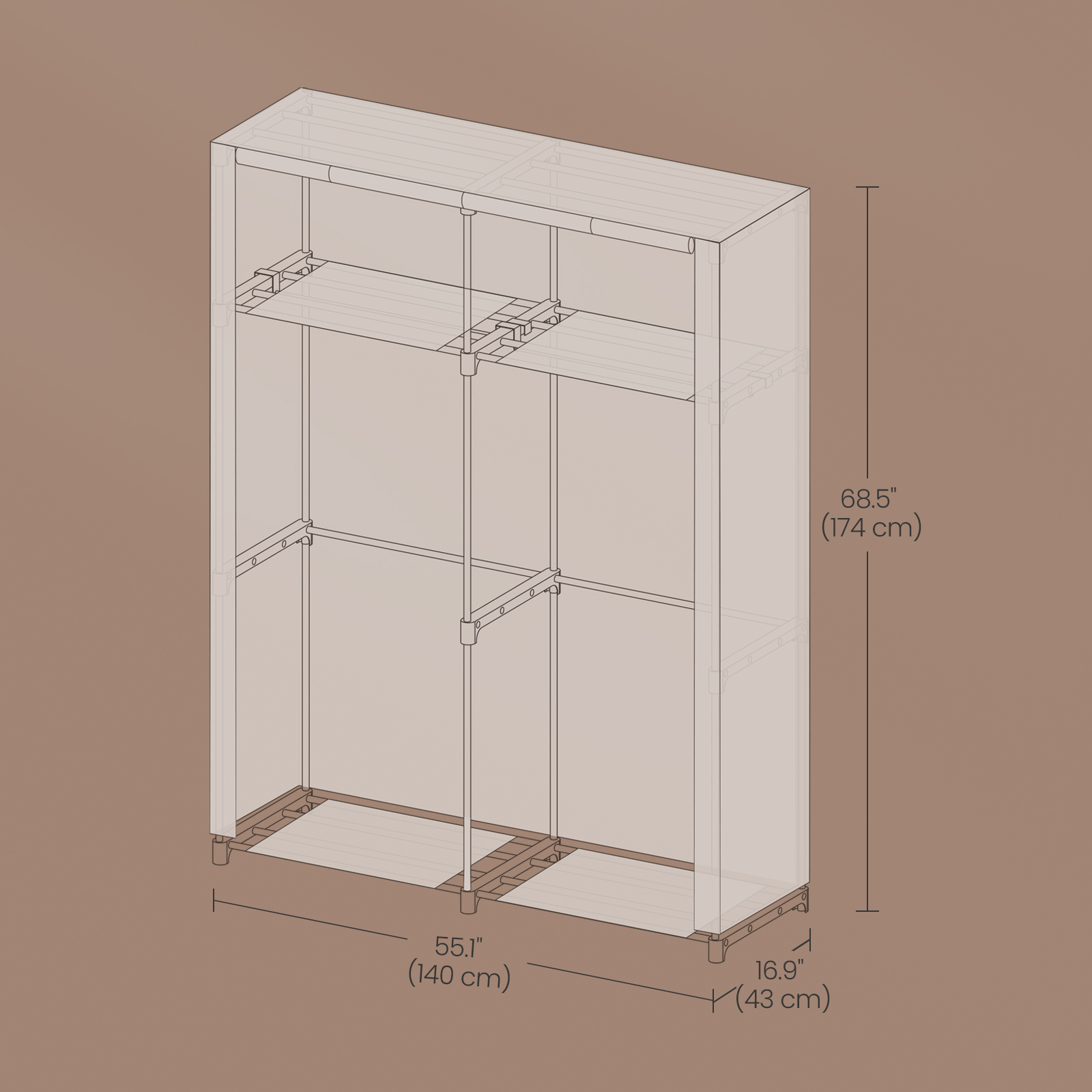 [What You Get] A fabric wardrobe made of high-quality non-woven fabric with hanging rails and shelves—an optimal way to get rid of the clothes chaos, even in a small apartment.